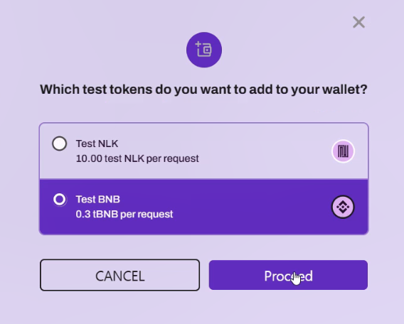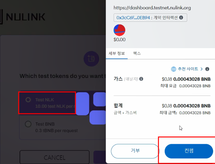 tBNB 먼저 수령 후에 Test NLK도 수령 (연결한 메타마스크 주소 입력하세요! Worker Address 아님)