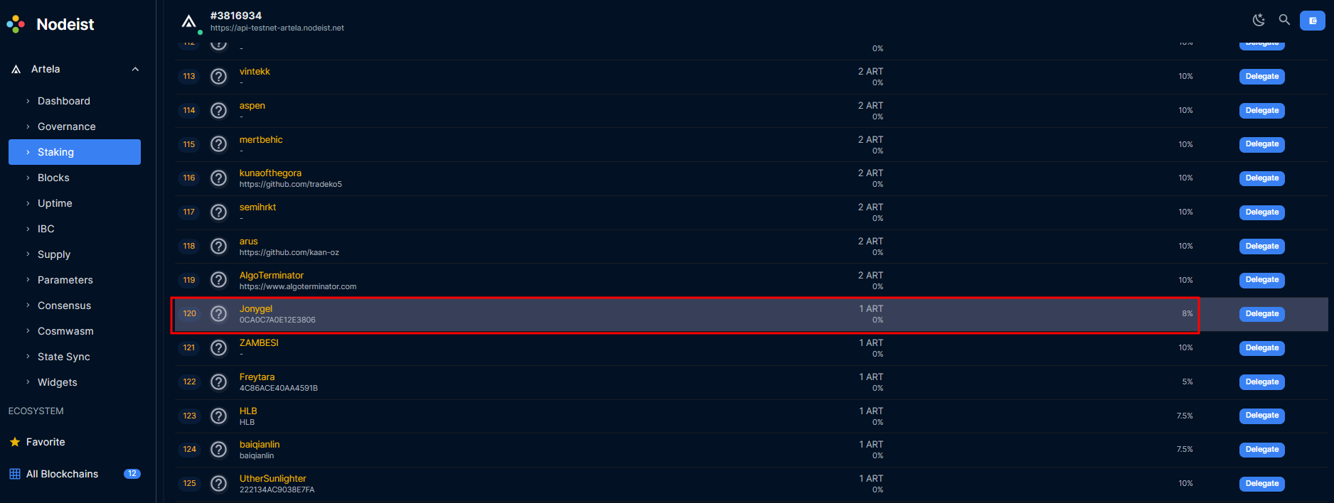 현재 Node Runner의 Active 30명 / Inactive 209명 수준으로 극초기이며, 단 1개의 ART를 Staking해 노드를 운영중인 사람이 Inactive 120위에 랭크되어 있을만큼 참여자가 거의 없습니다.