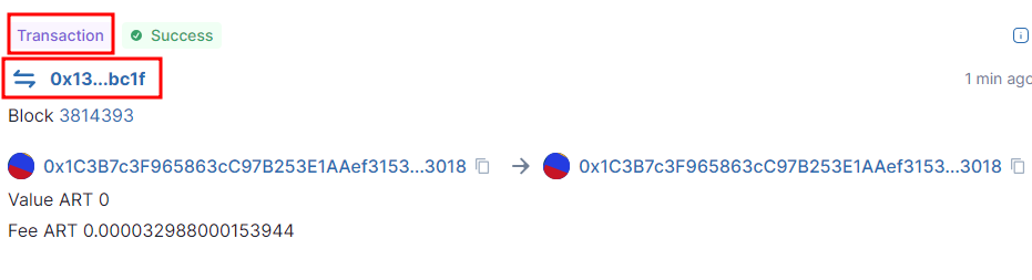 여기서 address에 art로 시작하는 주소를 아래 명령어에 입력해줍니다.