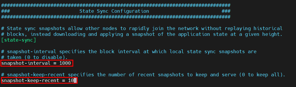 sed -i 's|^snapshot-interval *=.*|snapshot-interval = 0|g' app.toml