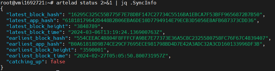 artelad status 2>&1 | jq .SyncInfo