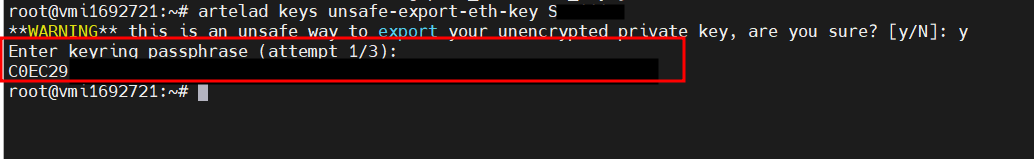 artelad keys unsafe-export-eth-key 본인지갑이름